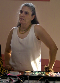 Lucy Elle is a resident of Seattle and is well known in the beading community. She has had a number of solo shows and particpates in group shows frequently. This show at the Scooter Gallery contains more than 100 pieces. Her designs have been published in several books and magazines. She is also an expert on dwarf hamsters. Click on the arrow to see some of Lucy's work currently on display in the gallery. . |